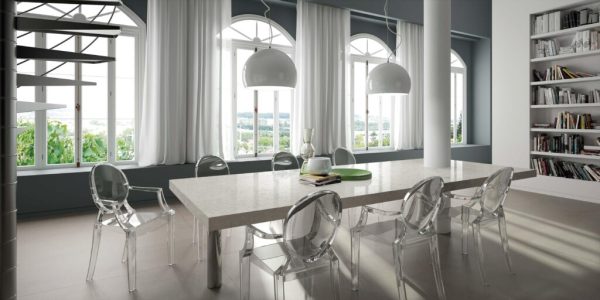 Gris Fosil viene en terminación Pulido. Es un acabado muy suave, liso y sedoso. Con un brillo discreto que realza el material, reflejando muy bien la luz y destacando las vetas y los diseños de los distintos modelos.