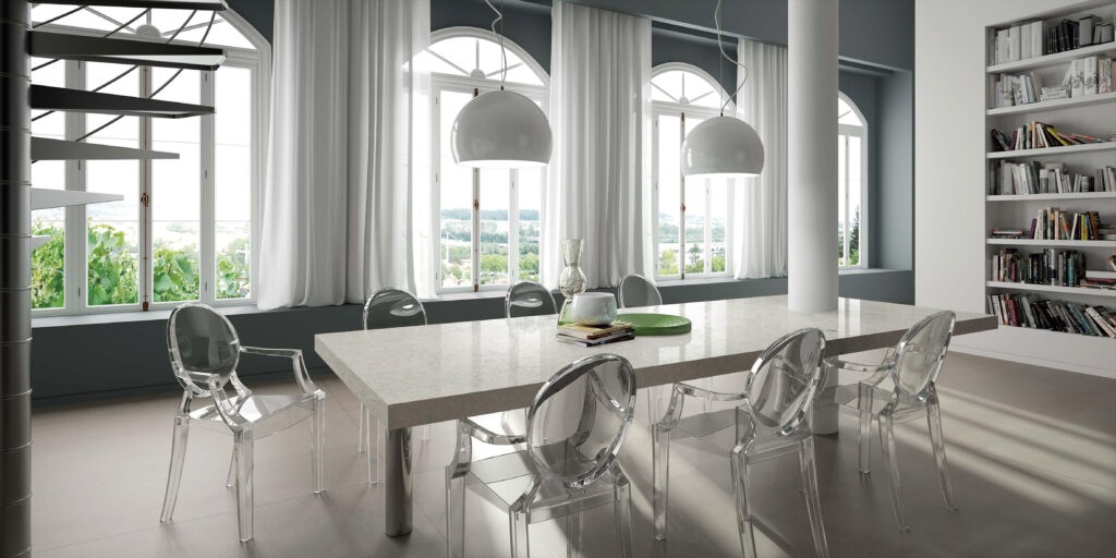 Purastone está compuesto principalmente por más de un 90% de cuarzo natural triturado, combinado con resina de poliéster, pigmentos y aditivos.